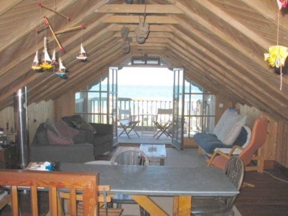 Open plan living room on top of railway carriages