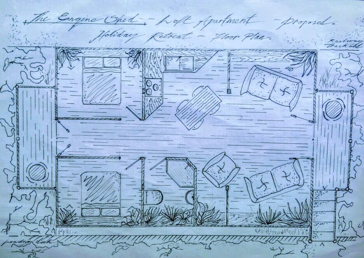 Has fully detailed planning permission approval with plans, for its build onto the concrete base already laid. For garaging / workshop. Designed as a Locomotive Engine Shed Workshop! with potential for a Unique Holiday Retreat ." The Engine Shed Loft Apartment "